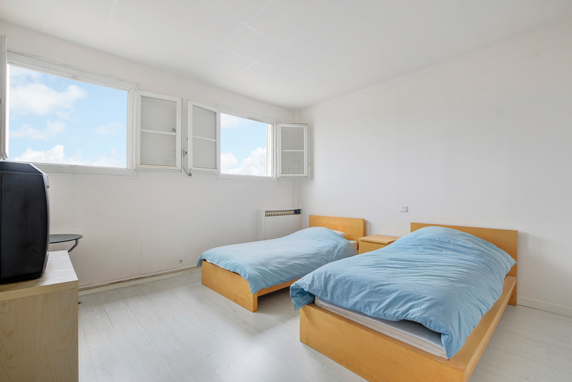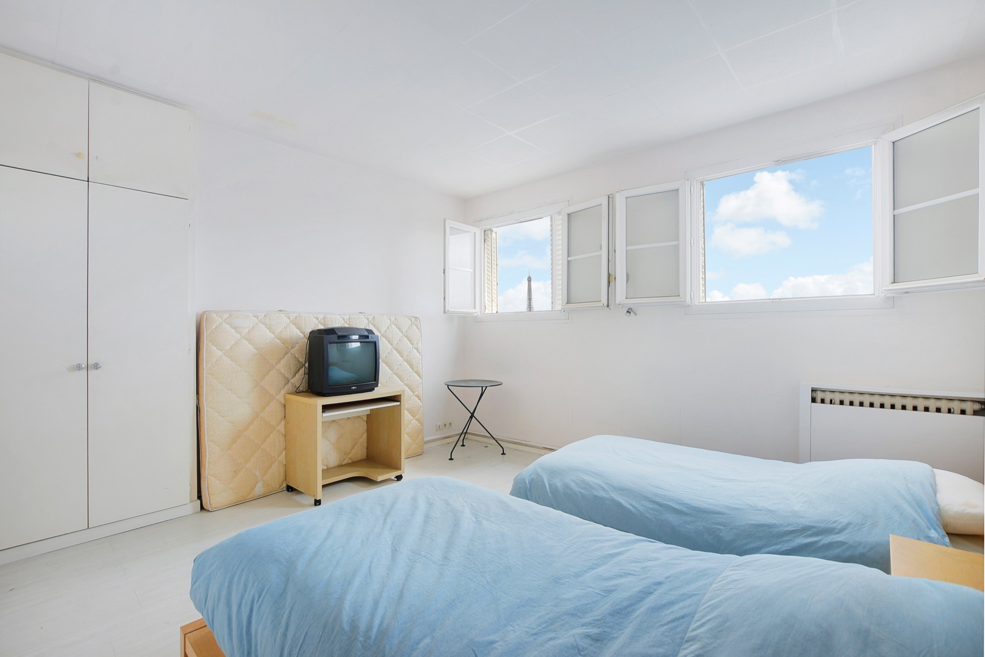 Une pièce de vie de 17m2, une salle d'eau. WC sur le palier. Exposition sud est. Très lumineux. Vue Tour Eiffel.