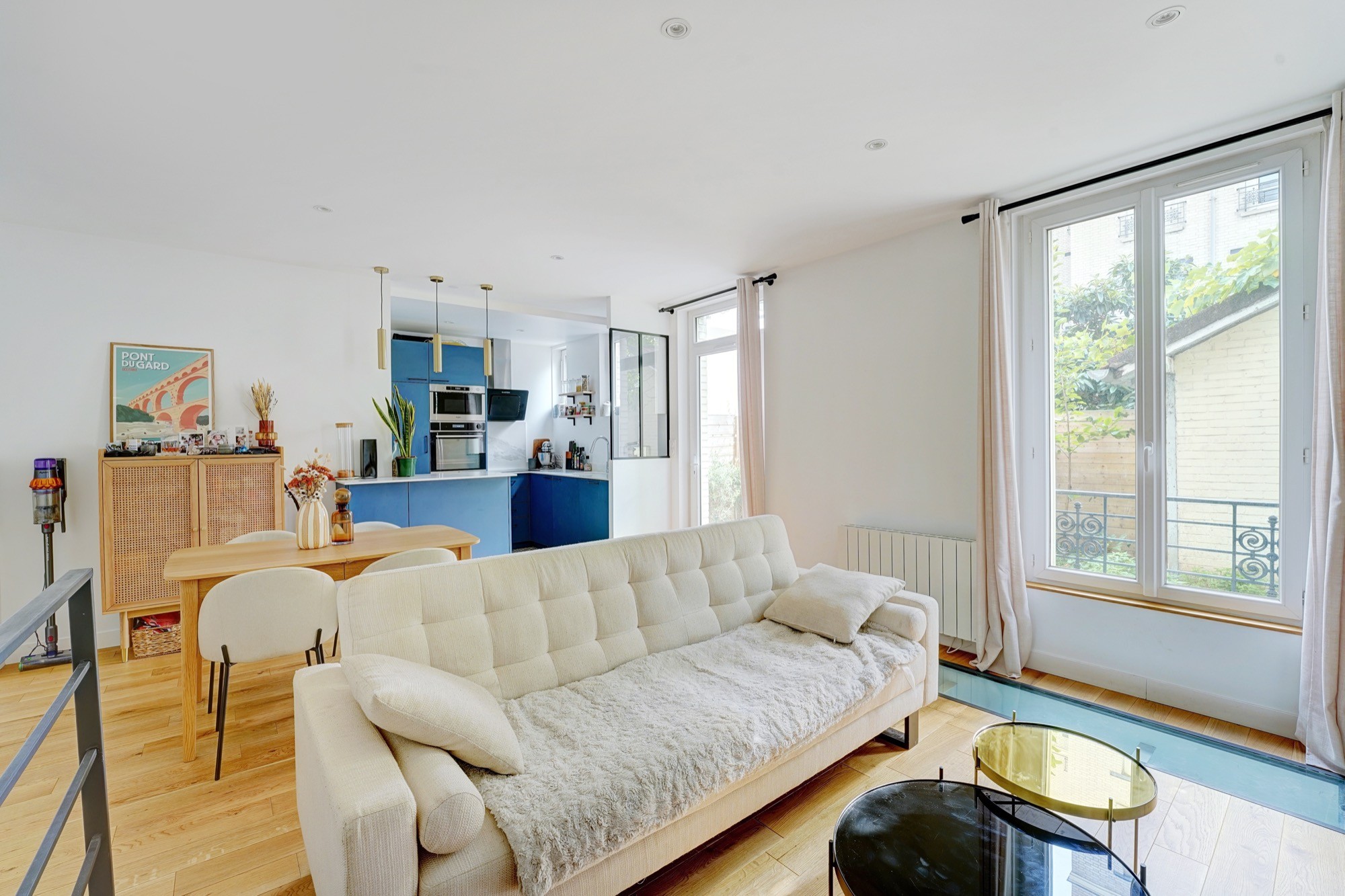 En rez-de jardin d'un petit immeuble en briques aux parties communes entièrement rénovées, exceptionnel appartement duplex de 48m2 avec un jardin de 28 m2. Ce bien comprend: - En rez-de-jardin : une belle entrée, un séjour avec cuisine ouverte entièrement équipée et donnant sur le jardin. - En souplex avec puis de lumière, une chambre spacieuse avec rangements, une salle d'eau, un WC séparé. Un jardin de 28m2 exposé plein ouest complète ce bien d'exception. Excellent produit, très lumineux, et idéalement situé, en plein coeur du Vieux Puteaux, le quartier le plus recherché, à proximité immédiate des commerces, transports, écoles et de la Mairie de Puteaux. Calme, charme de l'ancien.
